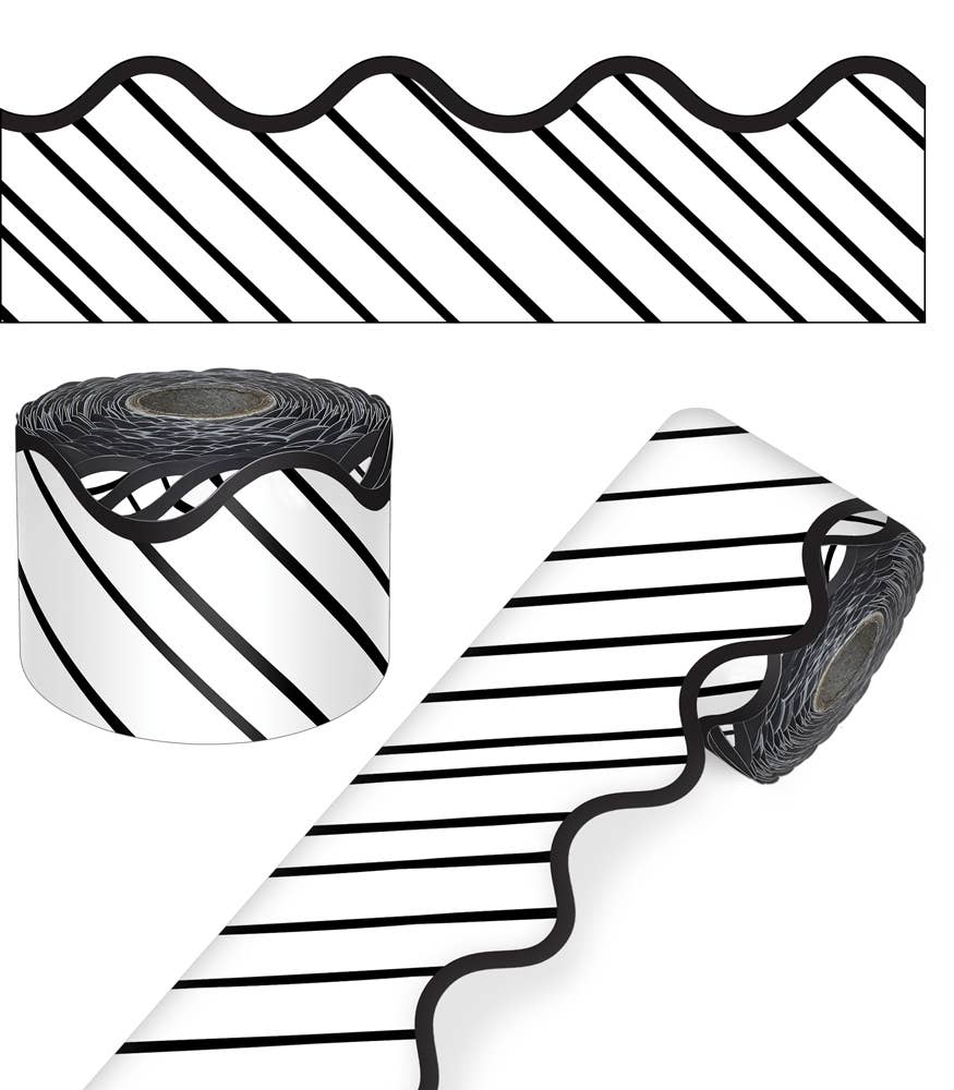 Add trendy designs to your classroom decor by decorating your learning space with Carson Dellosa’s Crafty and Cool Denim Bulletin Board Borders! The border bundle includes 13 strips of scalloped blue bulletin board border with a stylish denim design on each border trim. Each strip of border measures 3’ x 3” for a total of 39ft to dress up lockers, cubbies, bulletin board, cork board, and white board displays with ease. The classroom border is printed on thick but flexible bulletin board paper that you can cut and layer to add dimension to any display.