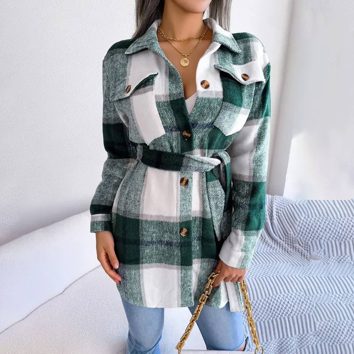 Denim Plaid Buttoned Shacket