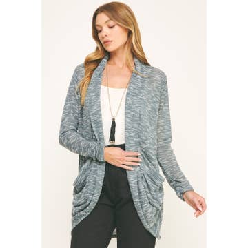 Long Sleeve Open Front Draped Cardigan