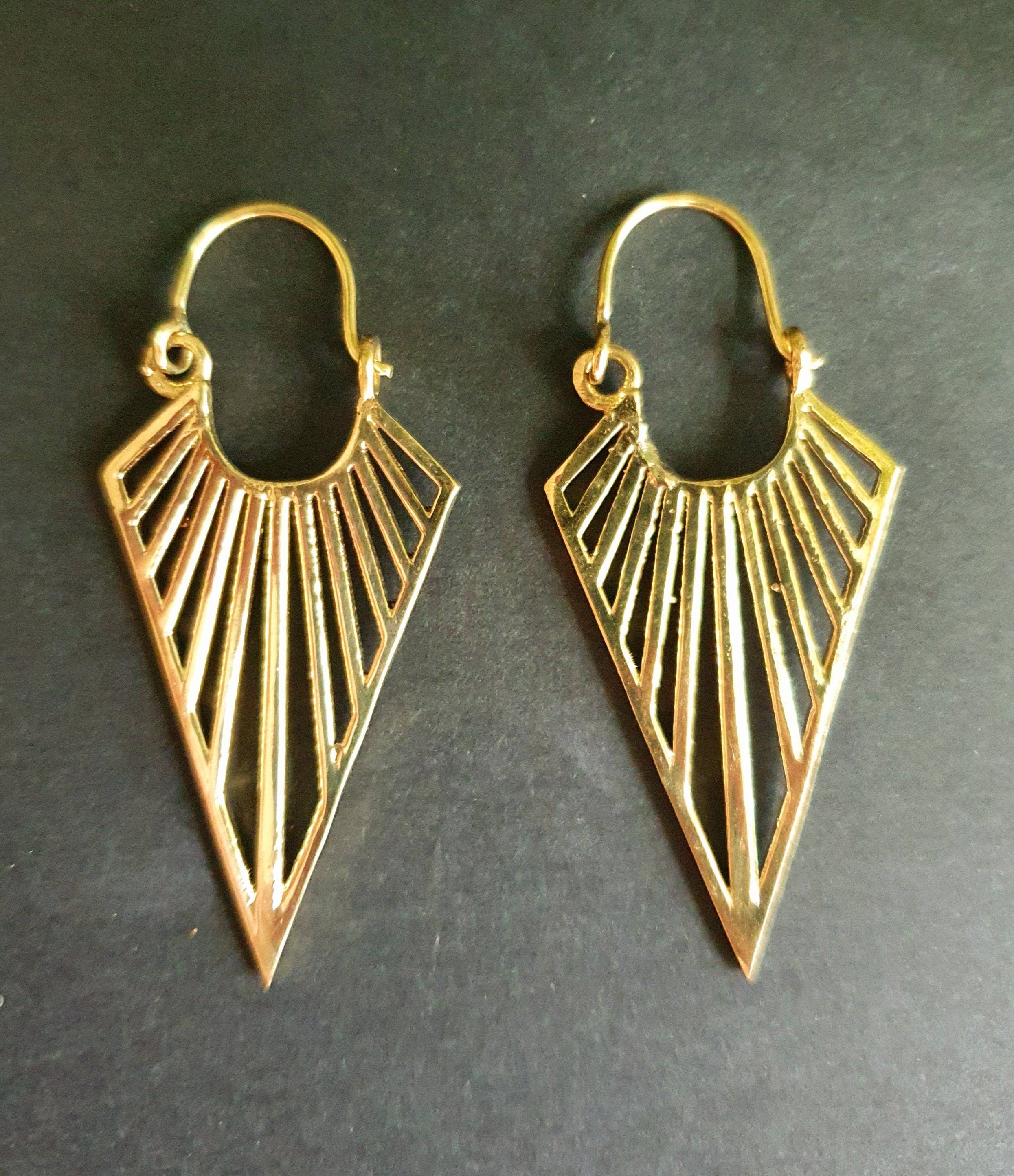 Wholesale Aztec Inca Style Brass Earrings; Ethnic, Geometric, rustic, yoga, hippie, gypsy, pretty, psy, boho, bohemian, festival