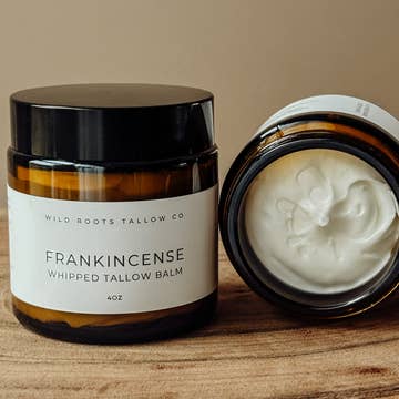Benefits: Deeply moisturizes and supports the skin barrier Calms redness, irritation, and inflammation Promotes elasticity and helps minimize fine lines Frankincense supports cellular repair and clarity Clean, nutrient-rich formula for all skin types This deeply nourishing whipped balm is a skin-loving blend of nature’s most potent moisturizers. Made with 100% grass-fed and finished beef tallow, it closely mimics the skin’s natural oils to restore moisture, reduce inflammation, and support long-term skin health. Golden jojoba oil and olive-derived squalane deliver lightweight hydration that absorbs quickly, while organic Boswellia serrata (frankincense) essential oil calms irritation, promotes clarity, and supports cellular renewal. Finished with antioxidant-rich vitamin E, this balm is ideal for dry, mature, or sensitive skin needing balance and rejuvenation. 100% Grass-fed and Finished Beef Tallow, Organic Golden Cold Pressed Jojoba Oil, Squalane Oil, Organic Boswellia Serrata (Frankincense)Oil, Vitamin E Oil