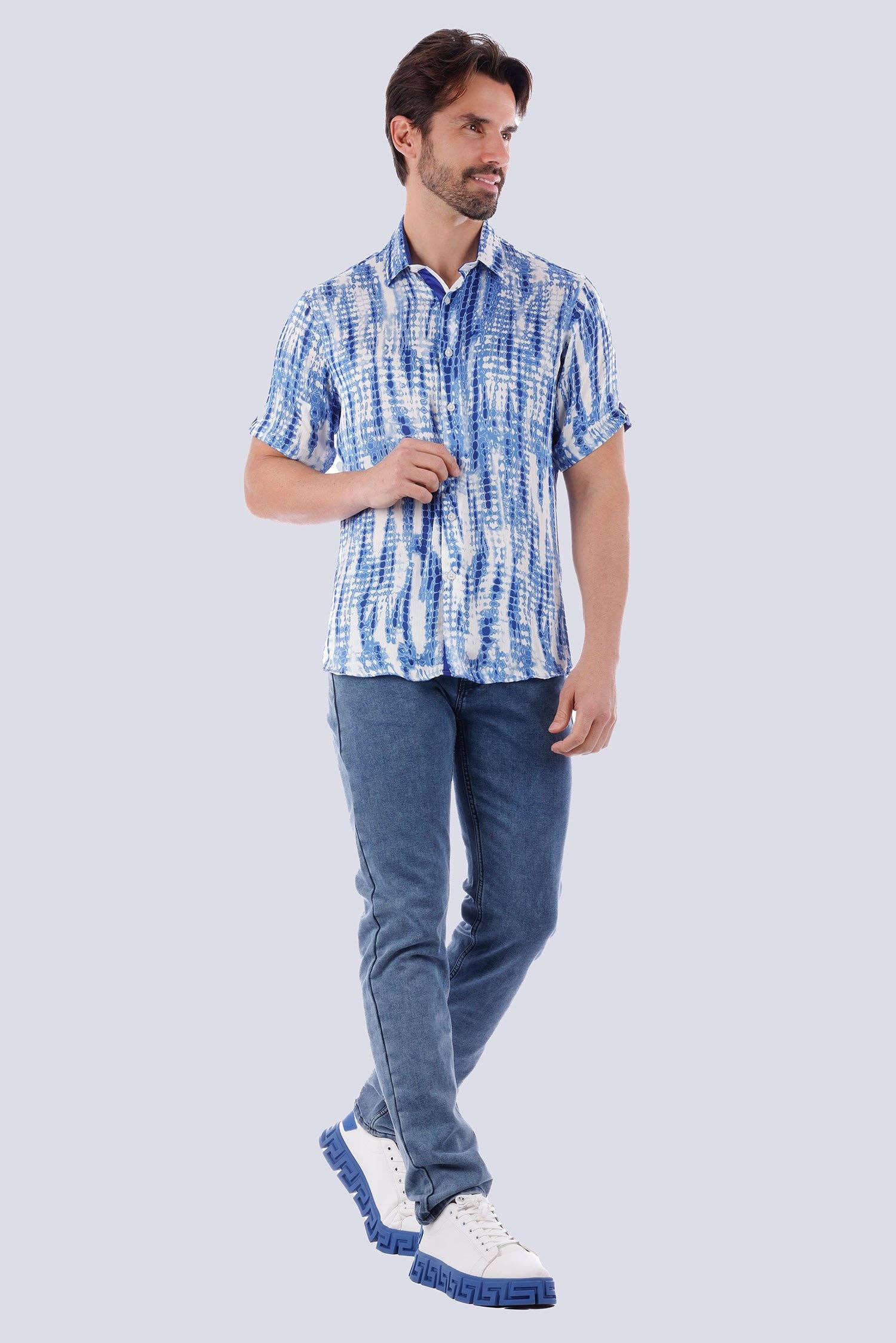 Details: * Barabas short sleeve shirts collection * Lightweight Fabric * Short-sleeve * Button-up * Floral and geometric printed Design Fabric & Care: * 100% polyester * Do not bleach * Dry clean recommended Packing Information: * Open Stock, you can order any size you need