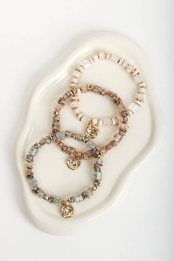 Mini Metallic Beaded Layered Bracelet Set