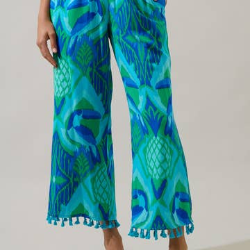 The Free2Be Pant will put you in a relaxed, carefree zone. Hand dyed/printed batik high quality rayon. Loose fitting with full leg. Detailing includes side pockets, elasticized back waistline & fabric tie belt. Comes in two sizes: S/M & L/XL.