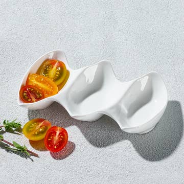 7" X 2 1/2" TRIPLE SAUCE DISH 2 OZ EACH Material: Melamine Item is sold by case, a case consists 48 of this.