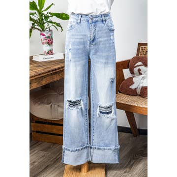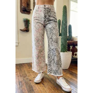 Western Leopard Frayed Edge Wide Leg High Waist Jeans*4-16
