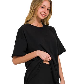 A black v-neck, fitted, short sleeve pocket tshirt. Search Keywords: 127320158, 127320159, 127320160, 127320161