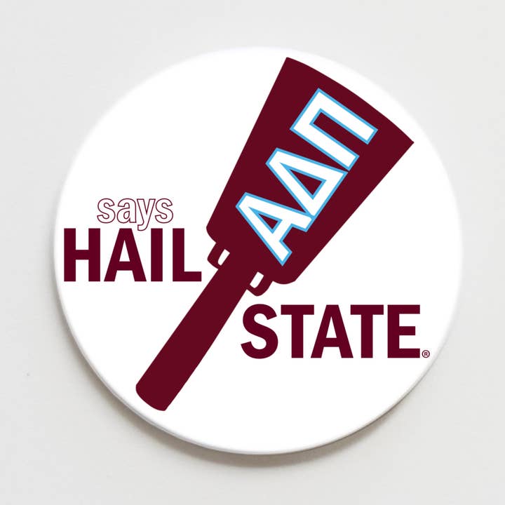 2.25 inch pin-back button letting everyone know your sorority affiliation in fun button in bold lettering and house colors. This is a perfect addition to a backpacks, tote bags or a day of tailgating with your friends.