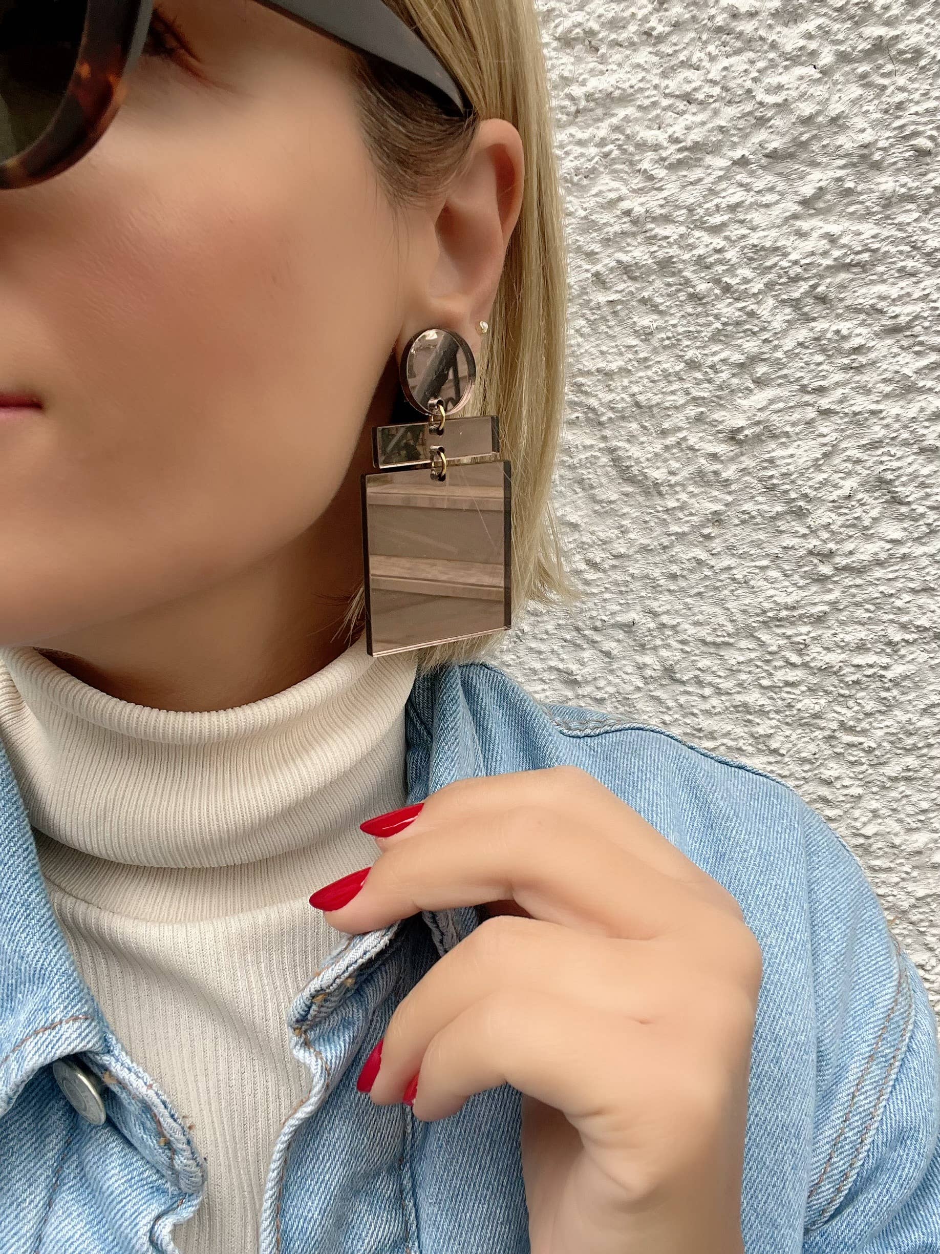 A Handmade Pair of Earrings that Open and Close with Clip On and are made from Wooden parts in brown color and Plexiglass Mirror parts in Gold Color as well. The combination of materials and colors, create a really special and different from all the other design for every woman. They are lightweight, easy to wear and comfortable while wearing them. You can find them only at Christina Christi Store. MATERIALS - Plexiglass Mirror Parts. - Wooden Parts - Metal Parts. - Hypoallergenic Metal Clip On. DIMENSIONS - Total length : 10 cm (3,93'') - Total Width: 3.5 cm (1.37'') PROTECTION - Protect them from water, parfumes, hair and body lotion to keep them bright and shiny for years.