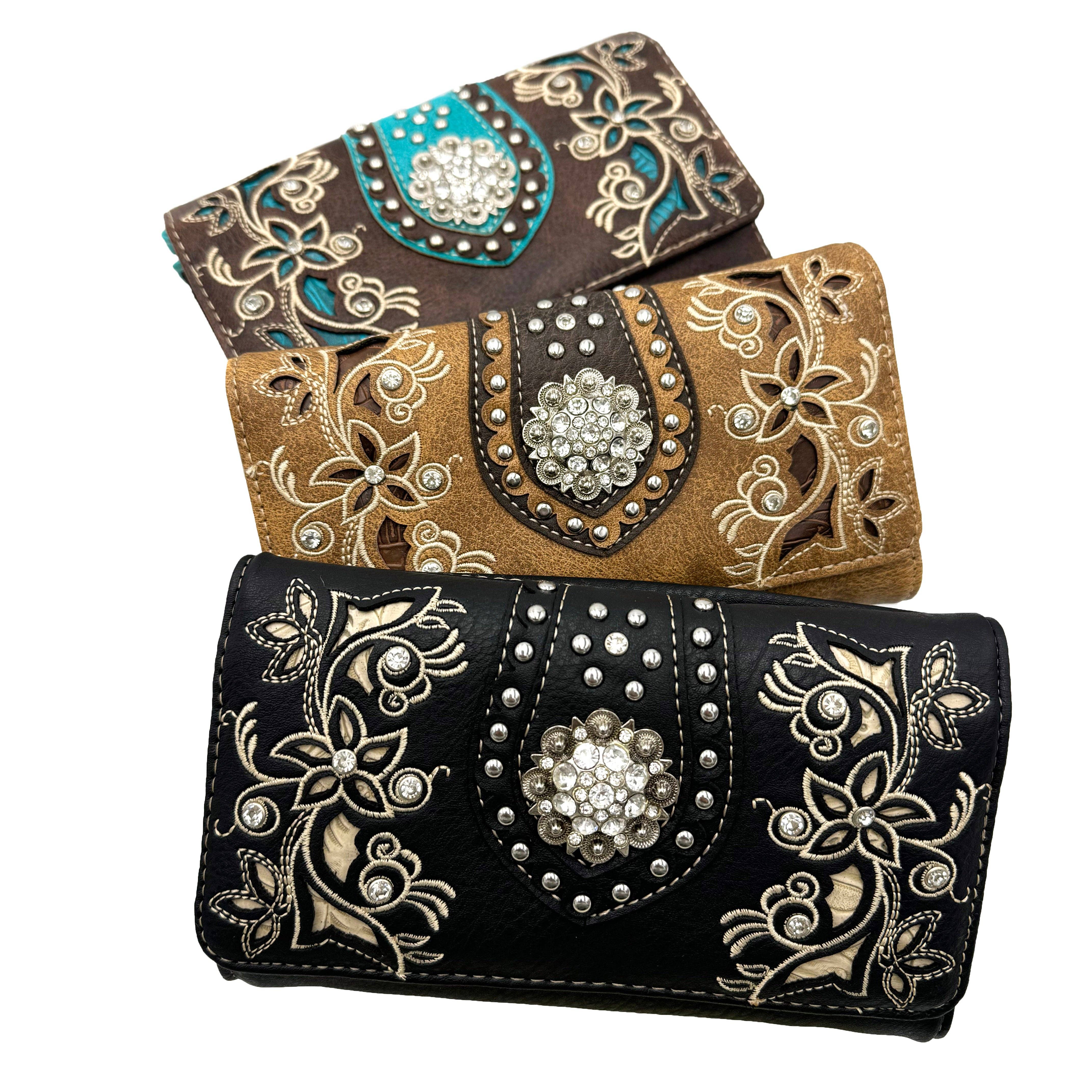 Wholesale Women Western Floral Damask Medallion Crossbody Wallet
