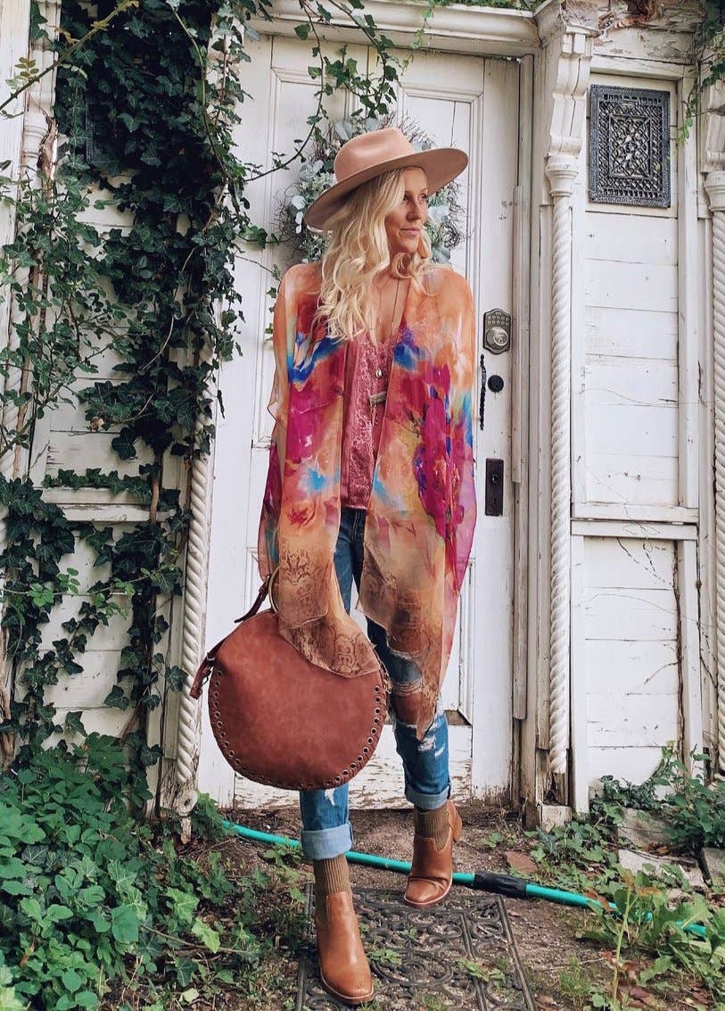 Our lightweight chiffon kimono is delicately made. Designed to fit most sizes (S-XL) Handcrafted in Canada Shorter length with shorter sleeves. Our items are carefully hand-selected for pre-packs, ensuring quality and curated assortments for your convenience. 100% Chiffon