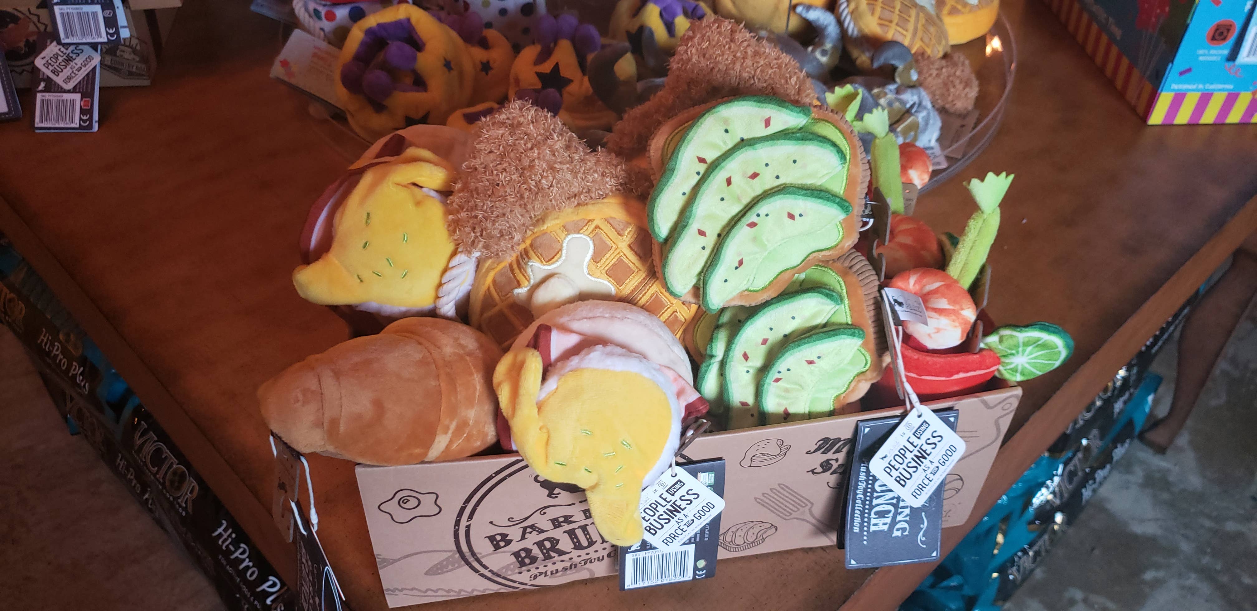 It’s brunch-o-clock somewhere and we’re serving up a tasty selection of egg-cellent options. Now your pup and their furiends can brunch with you and cheers to play time with a Bloody Mary while nomming on a buffet of a flaky croissant, eggs benedict, chicken and waffles and avocado toast. These toys and their mouthwatering features will have your furry friend asking for seconds in no time! • 100% machine washable • Durable double layered fabrics • Reinforced stitching for extra durability