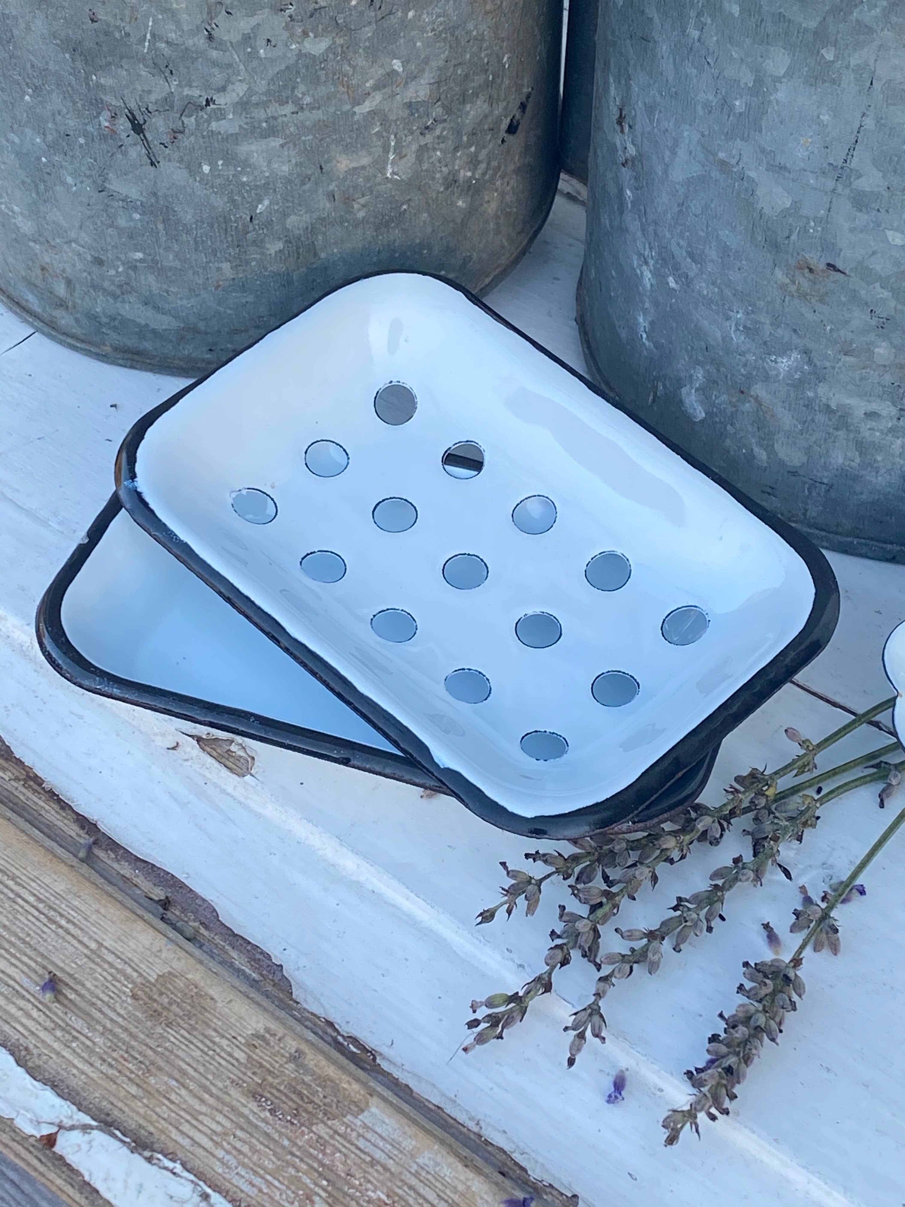 Add a touch of rustic charm to your bathroom or kitchen with our farmhouse white metal soap dish. Crafted from enameled metal, this soap dish features a distressed white finish that complements any decor style. The included tray ensures your soap stays dry and lasts longer. Features: - 6"L enameled metal construction - Distressed white finish - Removable tray for easy cleaning - Durable and rust-resistant - Perfect for farmhouse or vintage decor - Easy to clean and maintain People also searching for : farmhouse kitchen decor, rustic bathroom accessories, metal soap dispenser, vintage farmhouse sink accessories