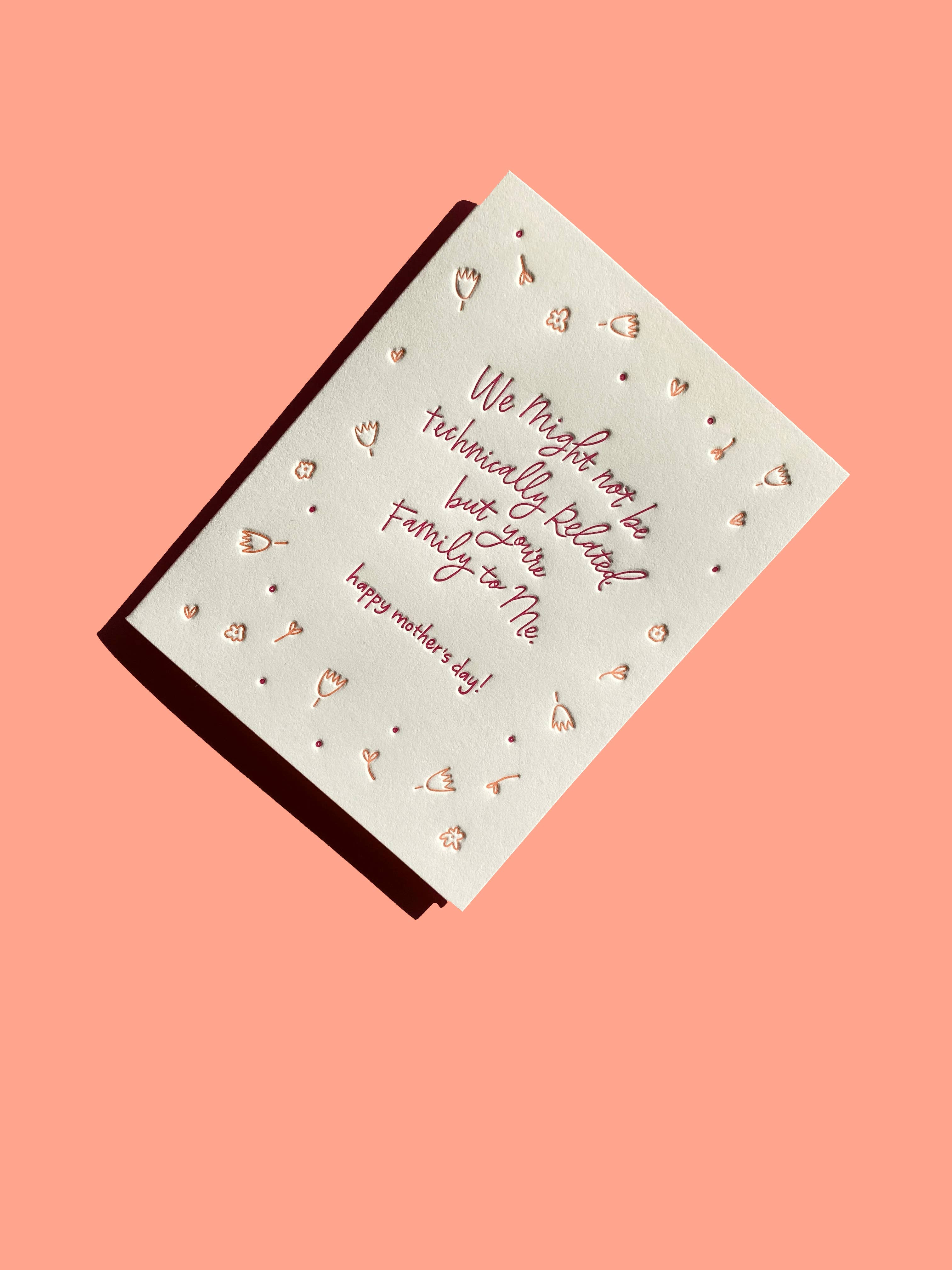 SKU: IMP-6017 Made in United States Card Count: 1 Color: Pink Finish: Letterpress and Textured Is Set: Individual Occasion Theme: Mother's Day Recipient: Parents and Women Season: Spring Special Feature: Blank and Textured Theme: Family & Friendship Tone: Heartfelt Weight: 18 g (0.63 oz) Dimensions: 14 x 10.8 x 0.3 cm (5.5 x 4.3 x 0.1 in)