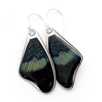 Real butterfly wings pair, whole wing, encased in resin using a proprietary process. Sterling silver earring wire, reversible!