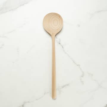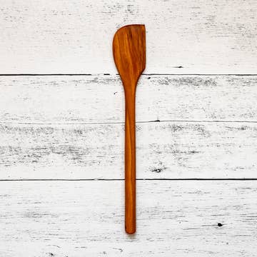 All our wooden spoon are solid Beechwood and treated with vegan wood oil which makes them completely food safe. It measures 12 inches long and 2 inches wide.