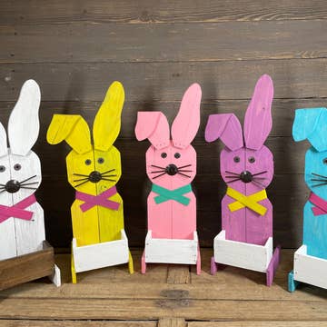 This yard stake is cut in the shape of a rabbit, and comes in a variety of colors and patterns. Makes for a fun Easter display in any front yard, patio, or walkway! Pairs well with our Bunny Yard Stake and Carrot Yard Stake! All of our metal home decor are cut from aluminum-composite material, which is commonly used in the sign industry, and printed with high-quality weather proof paint allowing for long-lasting color. 10" x 13"
