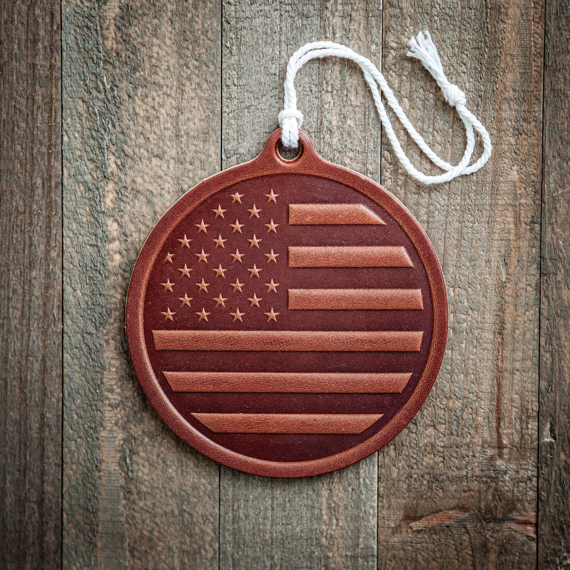 A 3 inch round all aluminum. 45 Mil thick ornament, gloss finish. The same image printed on both sides comes with a hanging ribbon.