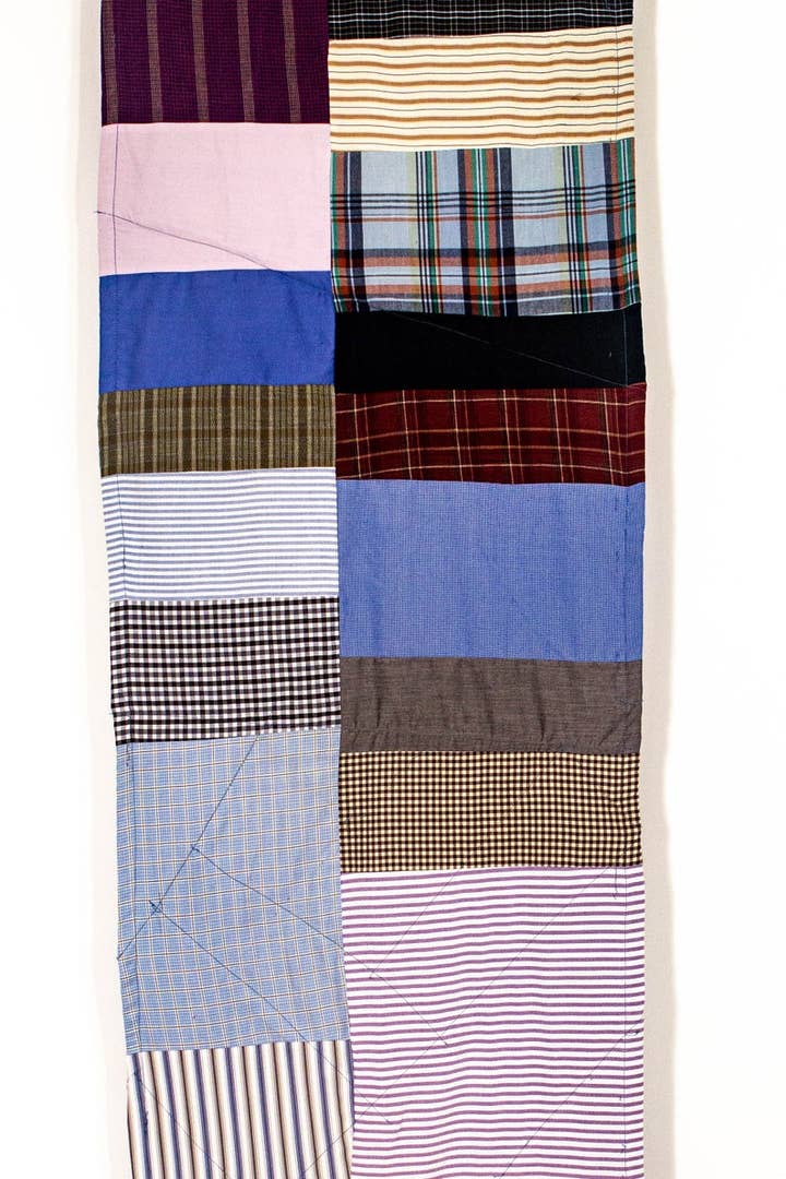 Individually handmade placemats & napkins made from recycled materials. Placemats have a denim patchwork front with soft shirt backing. Napkins are made from soft recycled shirts with a denim patchwork stripe on the front. All vary in color and fabric. Pre-Pack of 4 17" X 17"; napkins from recycled men's shirts