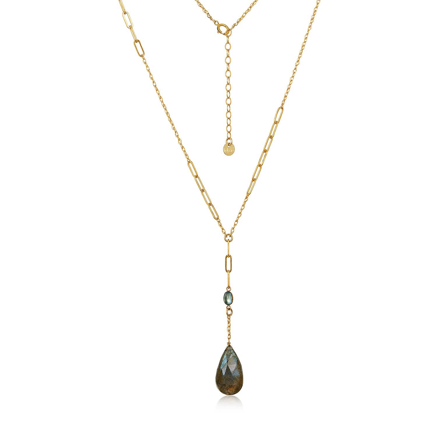 Modern Opus - Wholesale Pendant/Charm Necklace - Gold Plated Sterling Silver Labradorite Drop Bar Necklace2