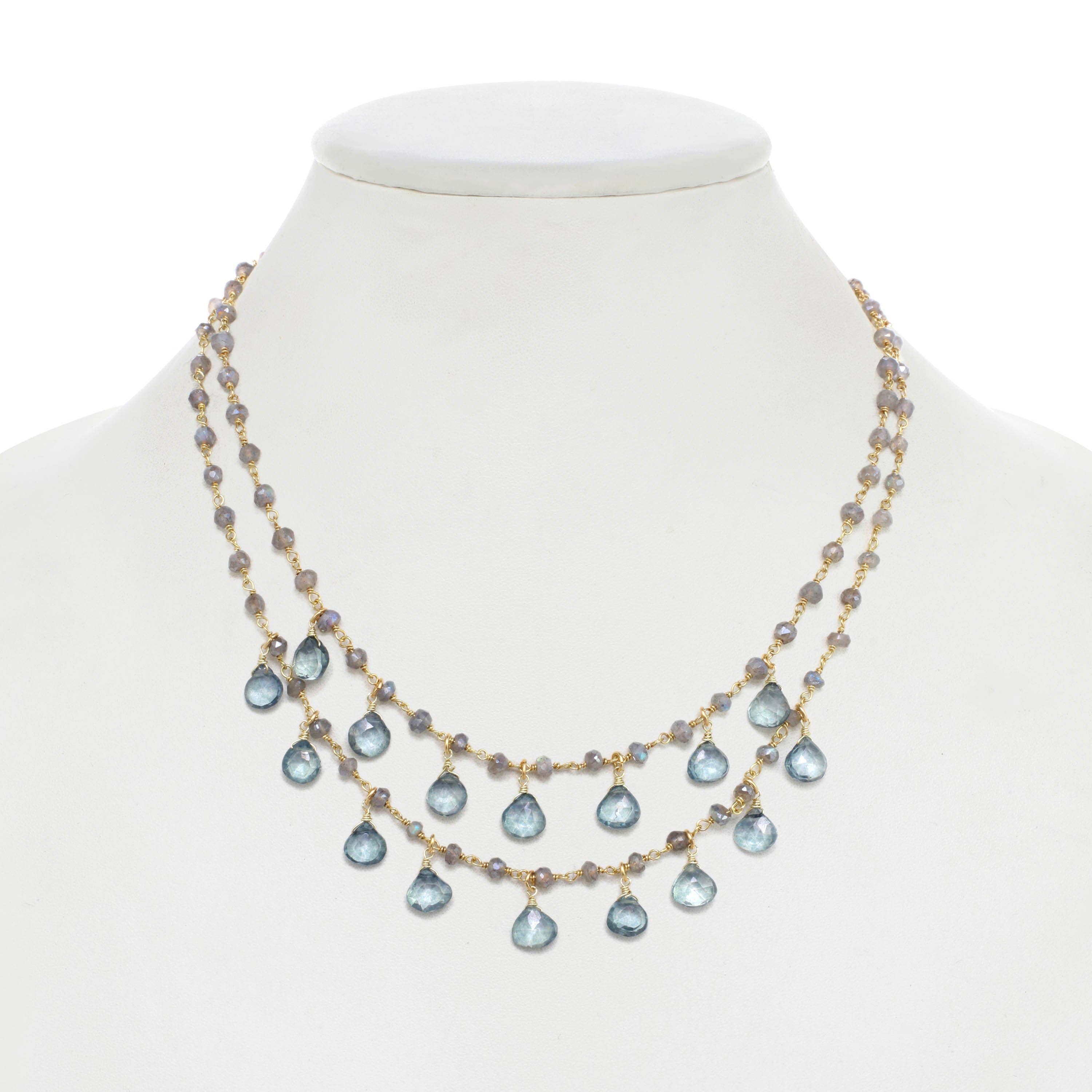 Wholesale Gold Plated Sterling Silver Labradorite Drop Bar Necklace