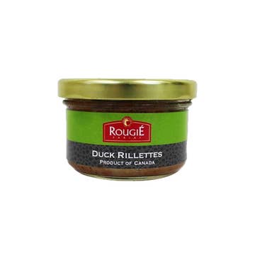 A combination of shredded duck meat, duck fat seasoned & cooked “Confit Style”. Perfect for gift baskets or to tote along for a picnic! - Unit Size: 2.8 oz - Case Size: 12 - Fully Cooked - Pork-Free - Shelf-Stable: 3 years. Keep refrigerated after opening. Serving suggestion: duck rillettes can be served in or out of the glass jar, on a cutting board with dry cured meats. Add some cornichons for a crunchy addition! Bread Pairings: Traditional French Baguette, Tuscan Bread, Rustic Bread. Wine Pairings: Vacqueyras, Côte du Rhône, Beaujolais Village, Saumur, Anjou, Sancerre Rouge. Ingredients: Duck Meat, Water, Toasted Wheat Crumbs (Enriched Bleached Wheat Flour (Niacin, Reduced Iron, Thiamine Monocitrate, Riboflavin, Folic acid), Leavening (Sodium Bicarbonate, Sodium Acid Pyrophosphate), Yeast), White wine (White Wine, Salt, Pepper, Sulfites), Onions, Salt, Pepper, Herbs, Garlic, Nutmeg, Sodium Erythorbate, Sodium Nitrites.