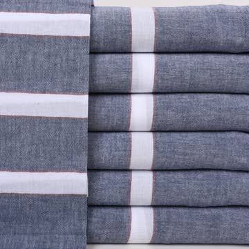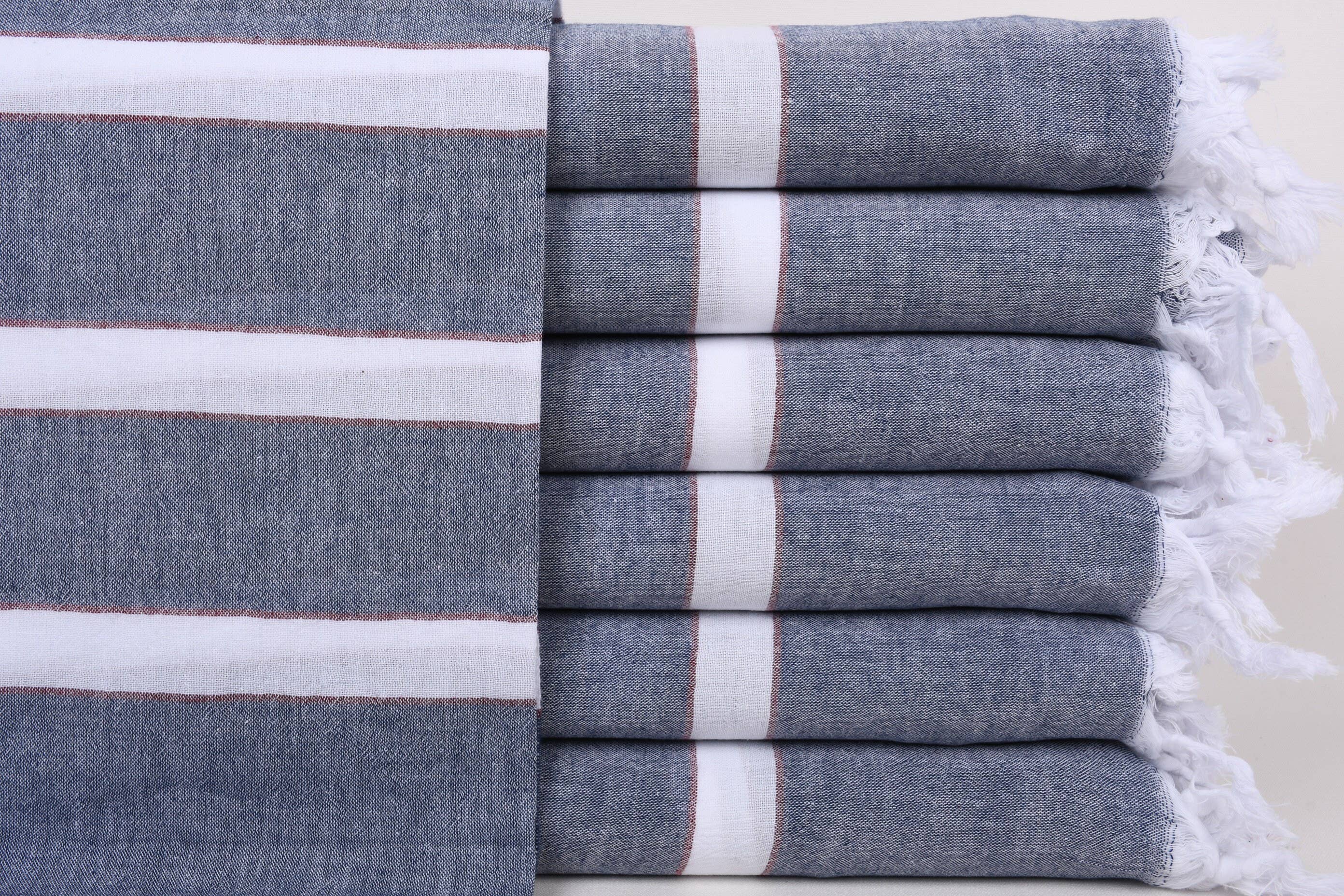 Navy Monaco Turkish Towel Body Towel Size: 40”W x70”L + fringe Hand loomed in Turkey with 100% Natural Turkish Cotton Can be used as beach towel, bath towel, scarf, table cloth, picnic blanket, sarong, light throw, bath sheet and much more. * Light and airy * Quick drying * Extremely absorbent * Eco-Friendly * Soft * Large in size and yet compact * Convenient for travel * Authentic and versatile * Thin * Softer and more absorbent with every wash Machine wash on cool. Tumble dry on low heat.