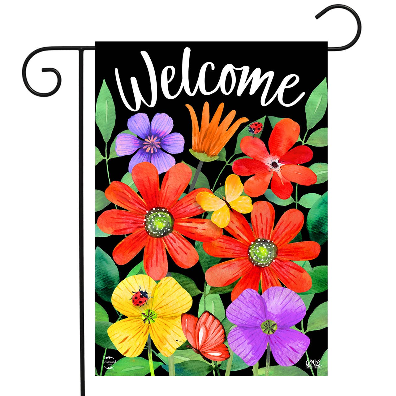 Garden size Print flag is 13x18. Design is sublimated to become part of the fabric, not just printed on the surface. Of heavy-duty 650 denier polyester, this flag offers outstanding quality at an affordable price. Flag is single-thickness; design is the same front and back. Light shining through from behind creates a stained glass effect. Flag will retain its color and beauty for years if displayed in shade or semi-shade, and is rainproof. Flagpole not included.