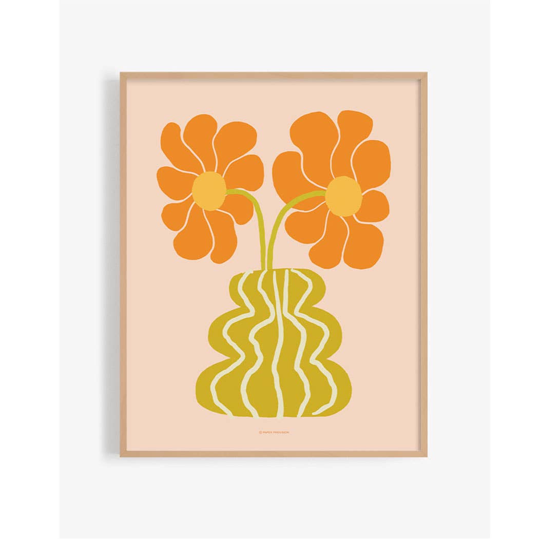 TITLE: "Wee Small Bouquet" This print was made using my original illustration of a lovely vintage-style floral bouquet in a bright orange vase. Has a soft pink background. For those who love flowers and growing things. ABOUT OUR ART PRINTS: ➤ Prints are shown framed for display purposed only, it does not come framed. ➤ We use only professional-grade artist paper and high definition inks. It is a heavy-weight natural white paper. Size: 8x10