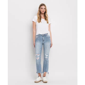 Light Wash Distressed Mom