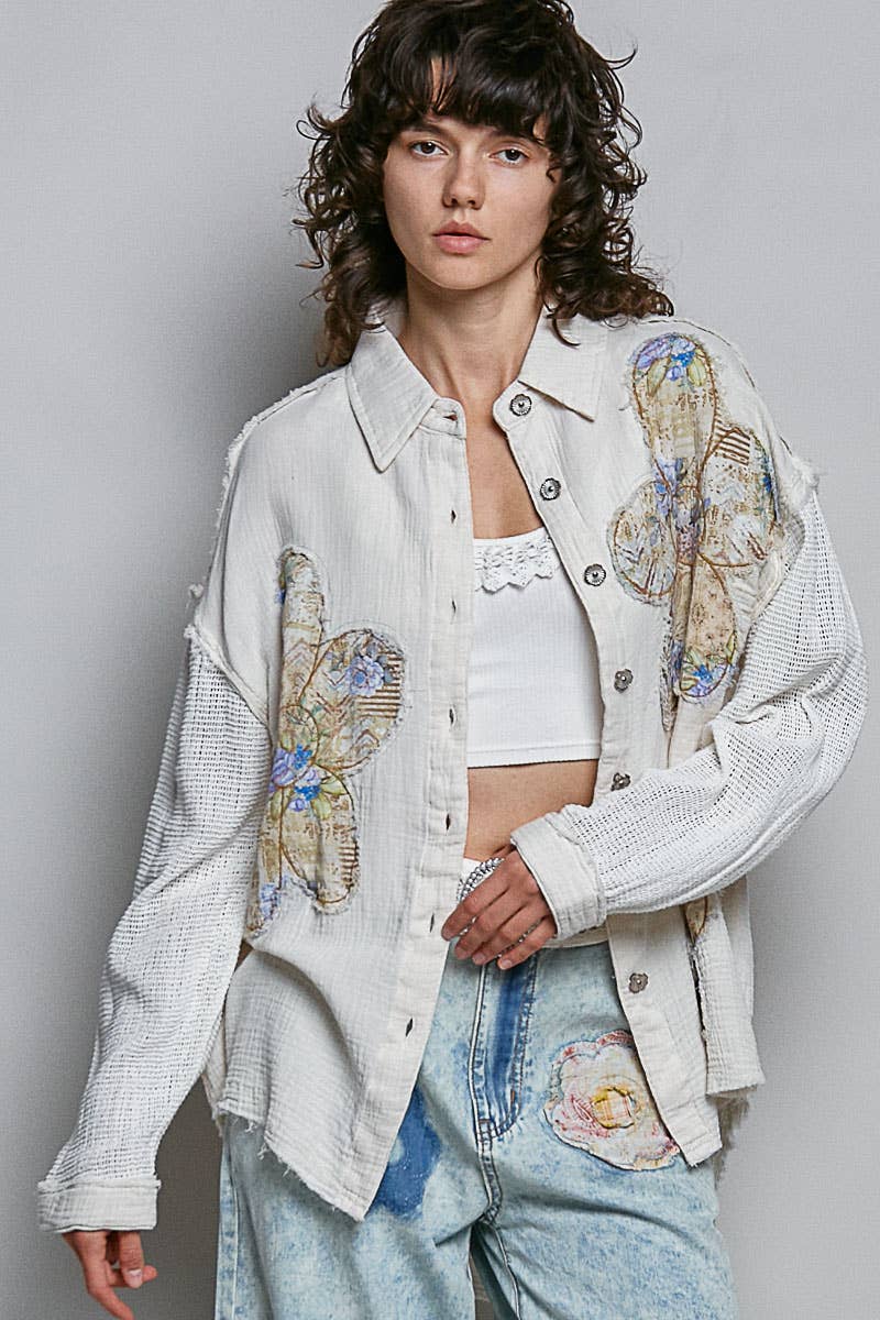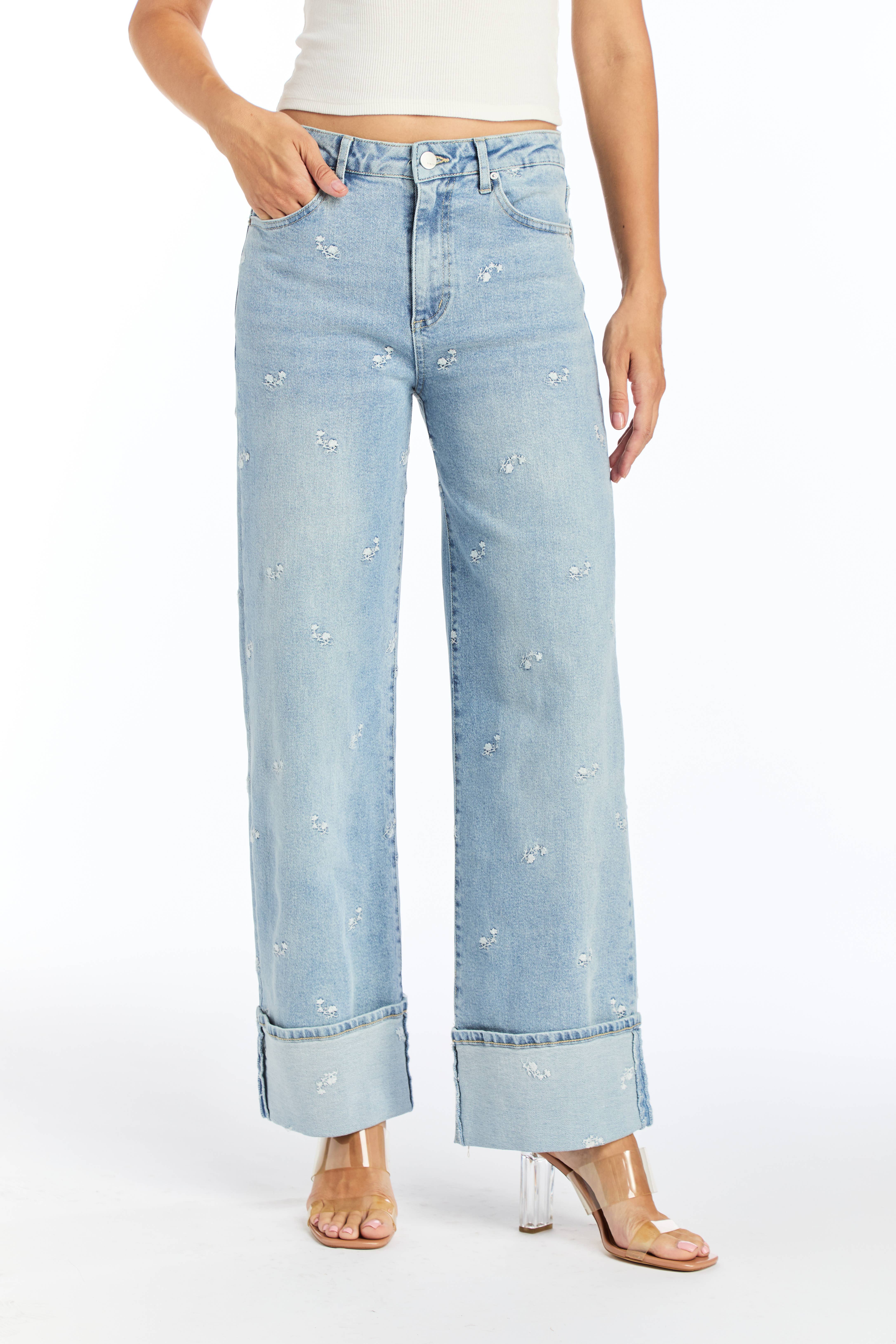 Experience casual cool with these wide pants designed in French terry, crafted for comfort and style. Featuring a solid color base with charming star patch details, delicate lace points, and a trendy raw edge finish, these pants bring subtle yet distinctive accents to your look. Enhanced by a vintage washing treatment, they offer a soft, worn-in feel that makes them an instant favorite for relaxed, casual wear. Specs/Dimensions: - WAIST: 13" (Elastic Band) - FRONT RISE: 12-1/2" - BACK RISE: 14" - INSEAM: 29-1/2"