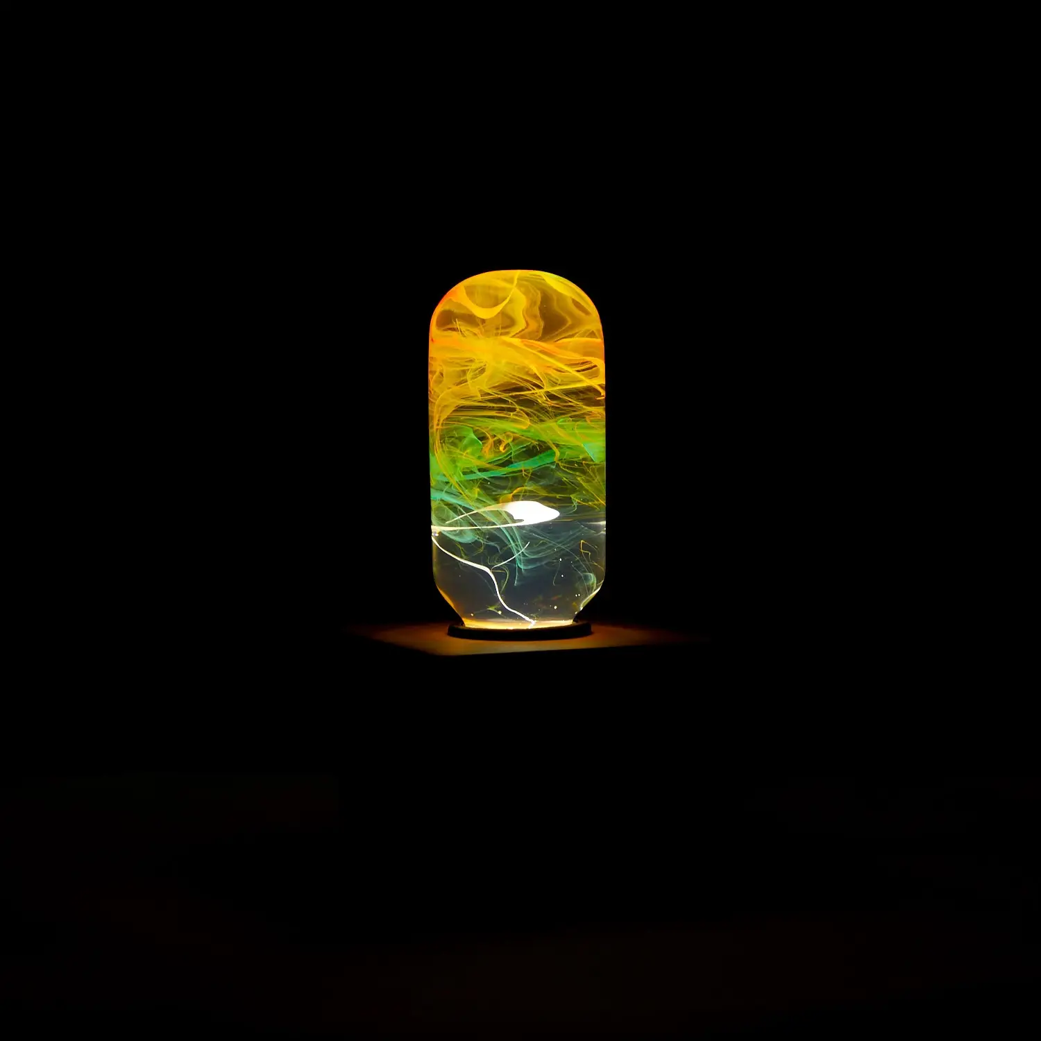 Each E.P. Light is unique. The actual color and paint curves inside will vary because each is crafted as an original work of art. Features Individually Handcrafted Highest Quality, Eco-Friendly Resin Construction Durable & Drop Resistant Never Hot To The Touch Requires 63% Less Energy Than Traditional Bulbs EP LIGHT bulb is like the common LED bulb and can be used in any regular light base or lamp. Product Details — Voltage: 110V — Bulb Type: LED — Bulb Socket: E27- E26 — Dimmable: No — Wattage: 1.5W — Lumens: 100lm — Bulb Lifetime: 50,000 Hours — Color Rendering Index: 90 — Suitable For Outdoor Use: Yes Bulb & Base Details — Includes LED Bulb + Cube Wooden Base — Base Features E27 - E26 Screw Mouth — 3.3 ft. Wall Plug (110V) — Overall Measurements: 2.4"L x 2.4"W x 4.3"H BULB + VINTAGE ROUND BASE — Includes LED Bulb + Vintage Round Wooden Base — Base Features E27 - E26 Screw Mouth — 6.6 ft. Wall Plug (110V) — Overall Measurements: 4.7"L x 4.7"W x 9.8"H