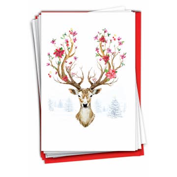 Ginger P. Designs - Wholesale Christmas Card - Reindeer Floral Christmas Greeting Card