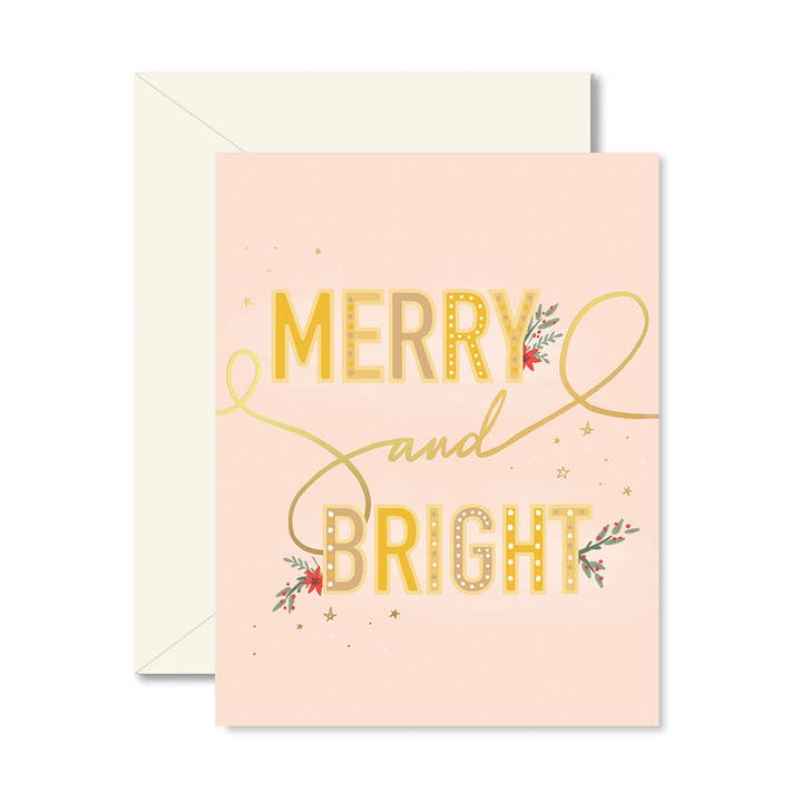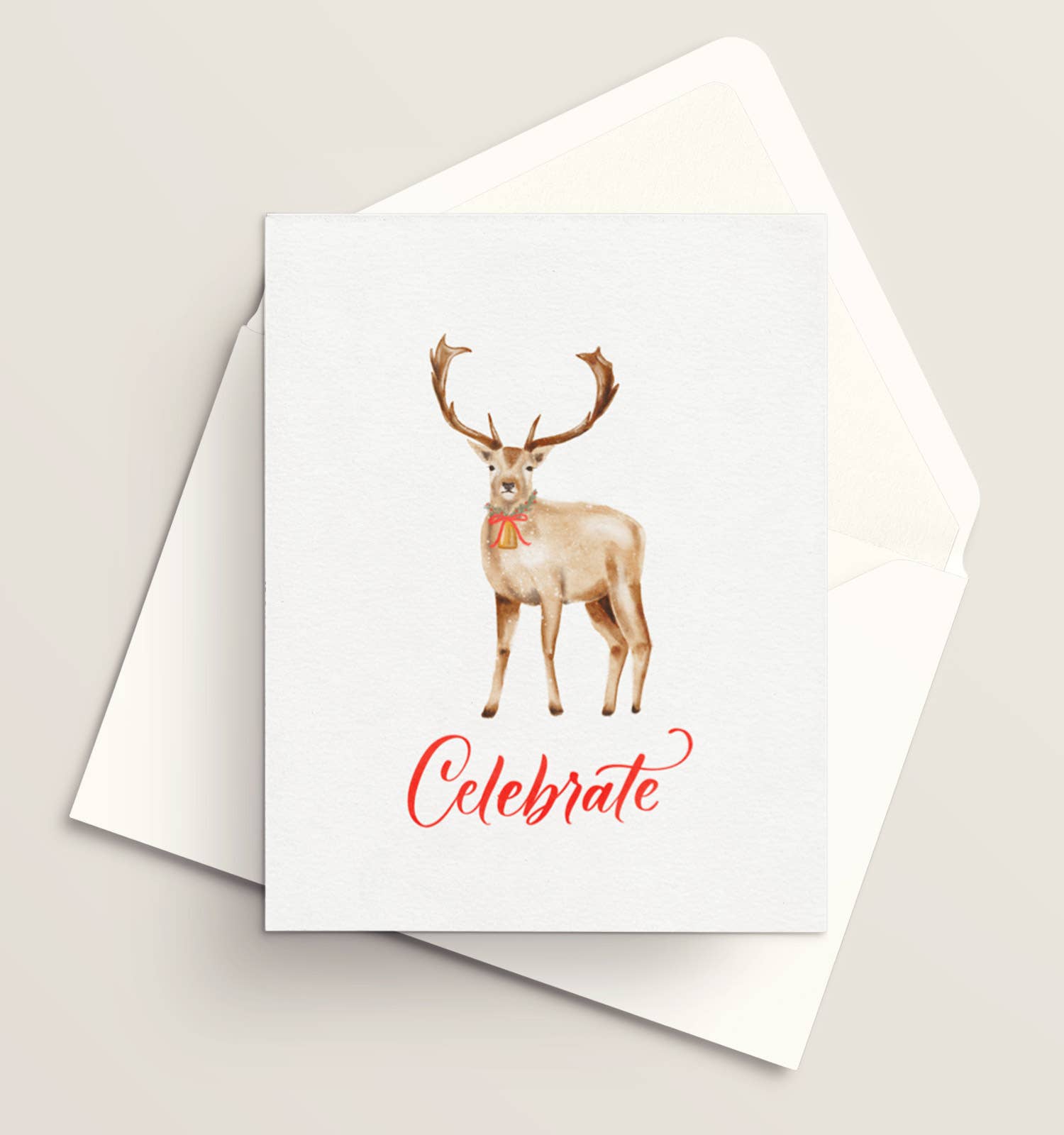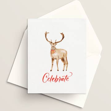 Reindeer Floral Holiday Card with gold foil Full - color 4.25" x 5.5" folded cards. Blank interior. Our greeting cards come individually packaged in an enclosed plastic sleeve.