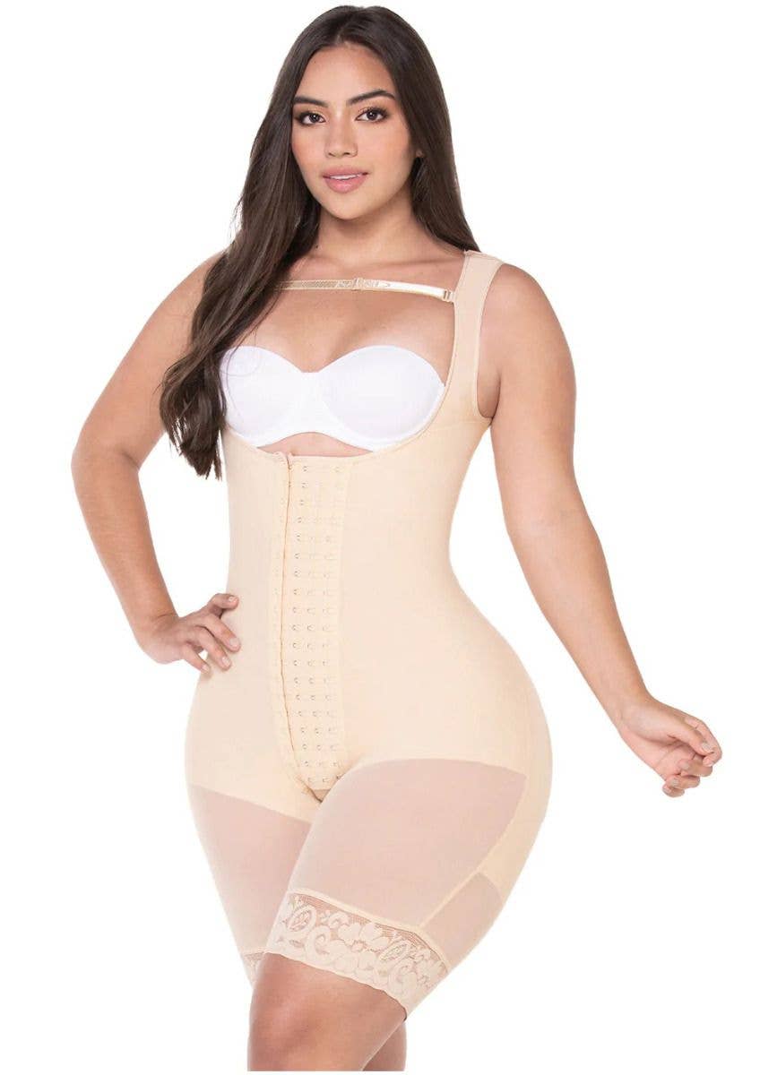 Style: SONRYSE 048BF Item: SONRYSE 048BF | Fajas Colombian Post Surgery Open Bust Powernet Mid Thigh Bodyshaper Colors: Black, Mocha Sizes: XS, S, M, L, 2XL, 3XL Give your clients a great option to recover safely and feel incredible after surgeries or giving birth, Sonryse top-quality compression garments are exactly what they need. These postpartum & post-surgery fajas will keep your customers' figures outlined while offering comfort and safety to their bodies.