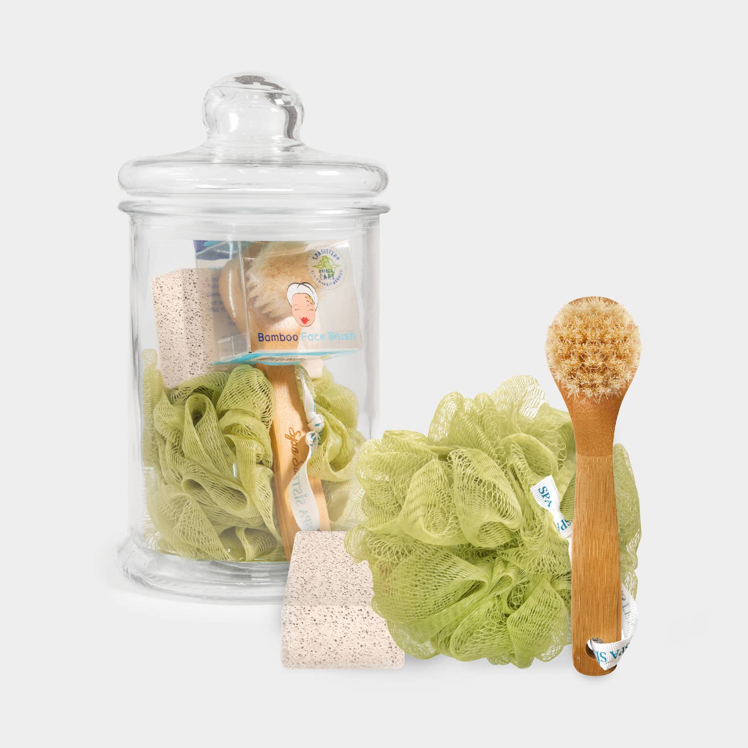 All of the necessary tools to soften and renew skin, for a luxurious home-spa treat. Includes: Exfoliating Spa Gloves, Spa Sponge, Exfoliating Face Brush, Foot Pumice, Treatment Socks, and Bamboo Detangling Comb, in beautiful gold storage bowl. Bowl Dimension: 6" x 3.25" Soft, luxurious Valentine gifts made for serene indulgence on Valentines Day! Celebrate your Valentine and all the Valentines you hold dear with gifts that softly say “I love you.” — Spa Sister is a premium brand of spa and wellness accessories. Supplying fine apothecaries, premium gift, and bath shops for nearly three decades, we know the perfect complements to your fine bath and skin care lines. ⚠ WARNING: Cancer and Reproductive Harm – www.P65Warnings.ca.gov