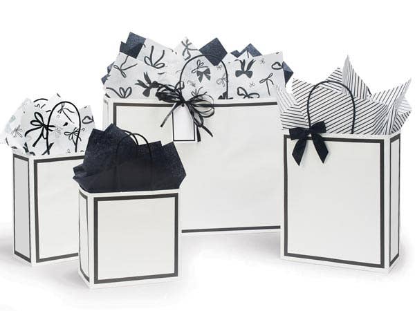 Beautifully printed tissue paper in pink bows, black bows, scroll, toile, stripes, bandana, newsprint and more. Made in the USA. Perfect to dress up your packaging for any special occasion. Several classic prints are now 100% recycled. All tissue prints contain a minimum of 20% recycled material.