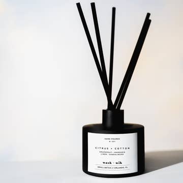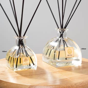 Form meets function in this stunning glass diffuser vessel, perfectly paired with Postmodernform's "clear the air" (white sage + lavender) signature fragrance oil scent. Add visual appeal while delighting your nose with this beautiful flame-free scent vessel. 6 diffuser reeds are included with the scent tube. Scent details: >> Clear the air - White sage + Lavender A timeless fragrance blend that refreshes and resets the mind and any space within which its contained. Solid lavender top notes meet sage and chamomile mid notes, atop a sandalwood and cedar base. Vessel dimensions: diameter: 3.25 in, height: 5.5in Fragrance oil / vessel volume: 2.7oz | 80mL Flame-free scent for approx. 3 months Products from postmodernform are always made with clean, eco-friendly ingredients and are always cruelty-free. Small-batch, handmade in San Francisco or Raleigh, USA.