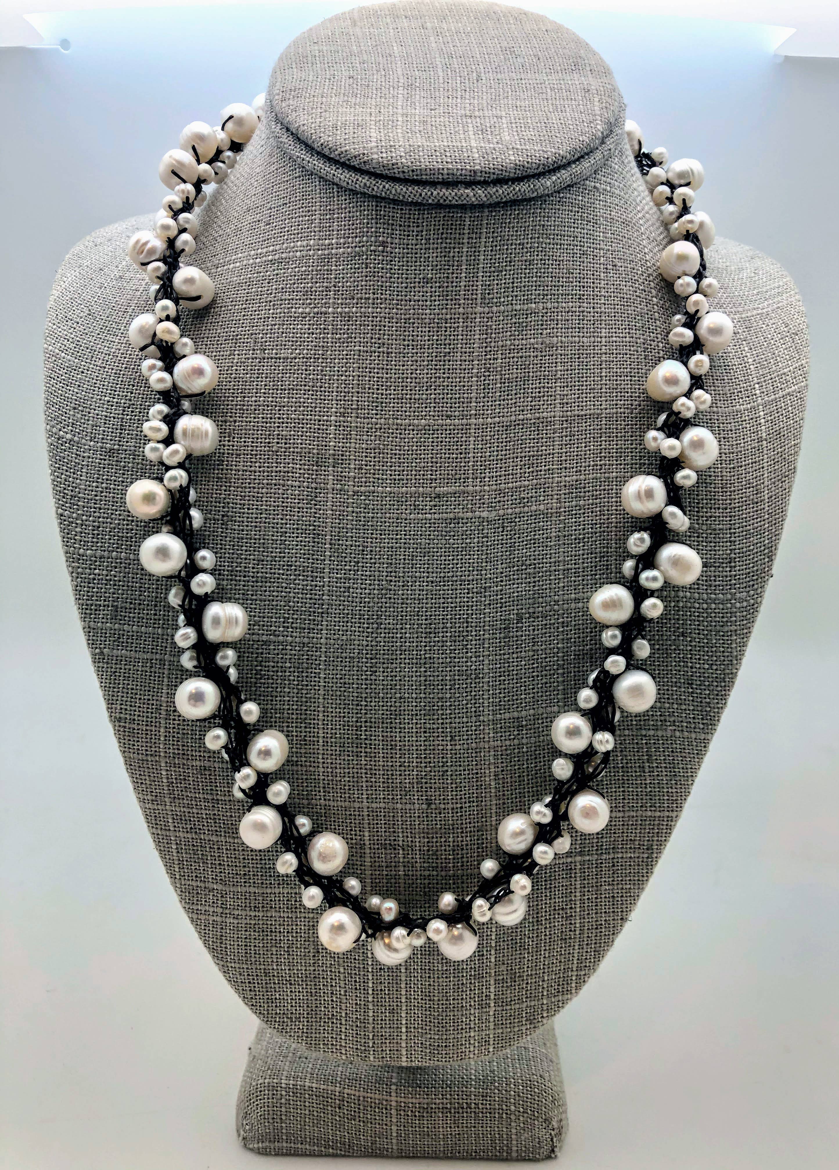 16"-18" Freshwater Pearl Necklace on Waxed Linen Cord. Hand knotted by a woman owned artisan group using fair trade practices.