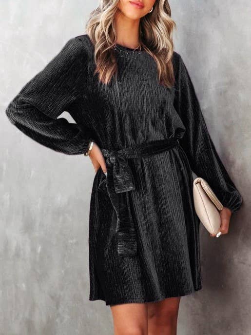 Velvet Fold-Over Lace-Up Dress