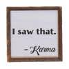 I saw that. Karma Sign. All our signs are build box frame with a rustic touch. Signs are hung directly off the frame or will stand up right on a table or shelf.