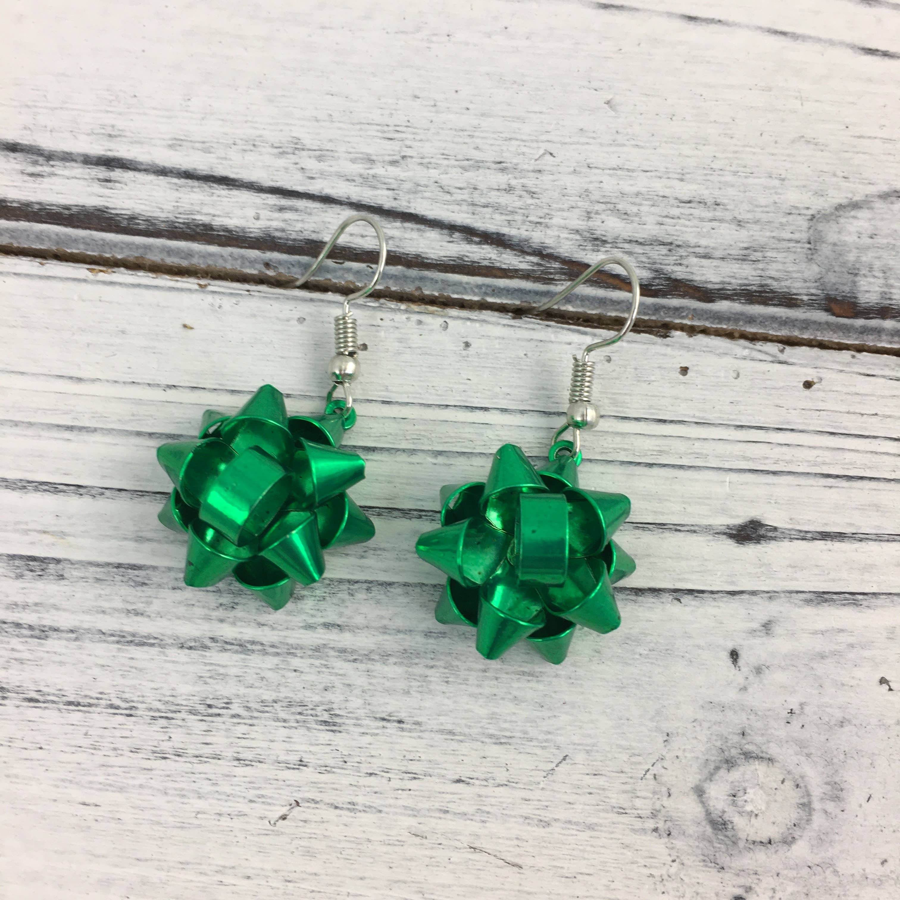 These are our Christmas gift bow/ribbon dangle earrings in the classic Christmas red color. Also available in green.