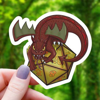An adorable sticker of Abraxos and Manon - one of the best character & creature friendships there is. *Sticker Details* - 3x2.2 in. sticker - Vinyl printed stickers - fast and easy bubble-free application - Waterproof & Weatherproof - dishwasher safe, can be placed on cars and water bottles - Removes with little to no residue, any residue can be easily removed with hand sanitizer or rubbing alcohol * Packaging Options * - Stickers can be packaged loose or individually (with or without a hang tag.) - Packaging preferences confirmed once order is placed via message. From Throne of Glass series by Sarah J. Maas. Artwork copyright © 2022 by Wildly Enough, LLC. Reprinted by permission of Writers House LLC acting as agent for the author.