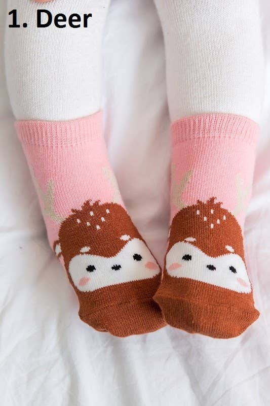 - Breathable, Flexible and comfortable every day socks - Excellent ribbed elastic welt top - Thick grip paw for a safe and secure step - Zoo socks; Moose - 75% Cotton 23% Polyester 2% Spandex - Good for Gift - Kids Socks - Animal character Socks
