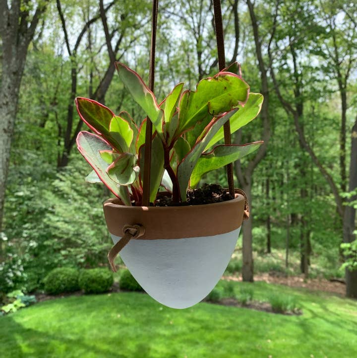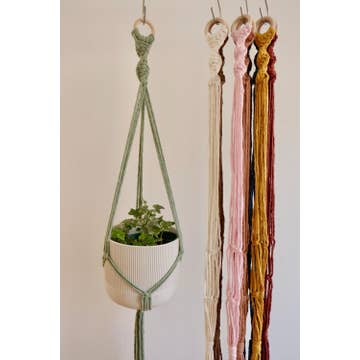 Create ambiance with our ceramic hanging planters. Hand-crafted by our ceramic artisan partners in San Juan de Oriente Nicaragua, these sealed terracotta planters are thrown on a non-electric kick wheel, wood kiln-fired and finally hand-painted. The cotton macrame hangers are made by hand by a small women's artisan group. Approximately 3.25" wide x 3" tall. Includes 17" cotton macrame hangers. Sold in cases of 8. Fair trade.