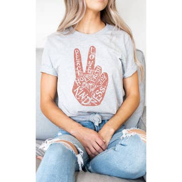 SKU: SOL143-SM Made in United States Aesthetic: Bohemian and Casual Care Instructions: Machine wash Color: Gray Fabric: 50% Organic Cotton, 50% Recycled Polyester (made from recycled beverage bottles) Fit: Missy and Plus Size Neckline: Scoop neck Occasion Theme: Everyday Occasion: Everyday and Loungewear Season: Core Sleeve Length: Short Sleeve Theme: Empowerment Product Language: English Weight: 190.51 g (6.72 oz) UPC: 840150311386 Product Materials: Organic and Recycled Packaging: Recyclable Production: Ethically sourced