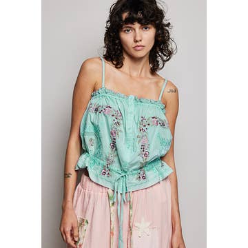 Tank - Silky Viscose - Accented with lace in V neck - one size Super cute, bias cut, with that been said fits up to size 10 Looks fabulous with any of our jean like pants Style #2120 #2120st, 2120rb, 2707, 2609