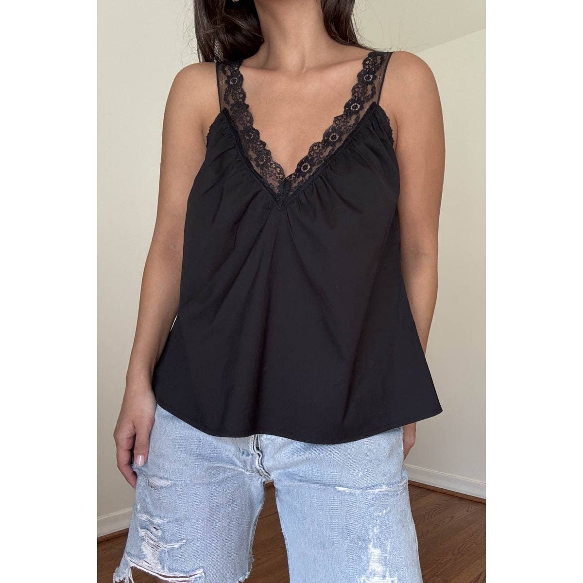 Tank Top Silk with V-neck Lace