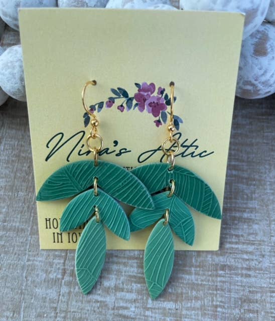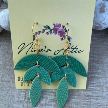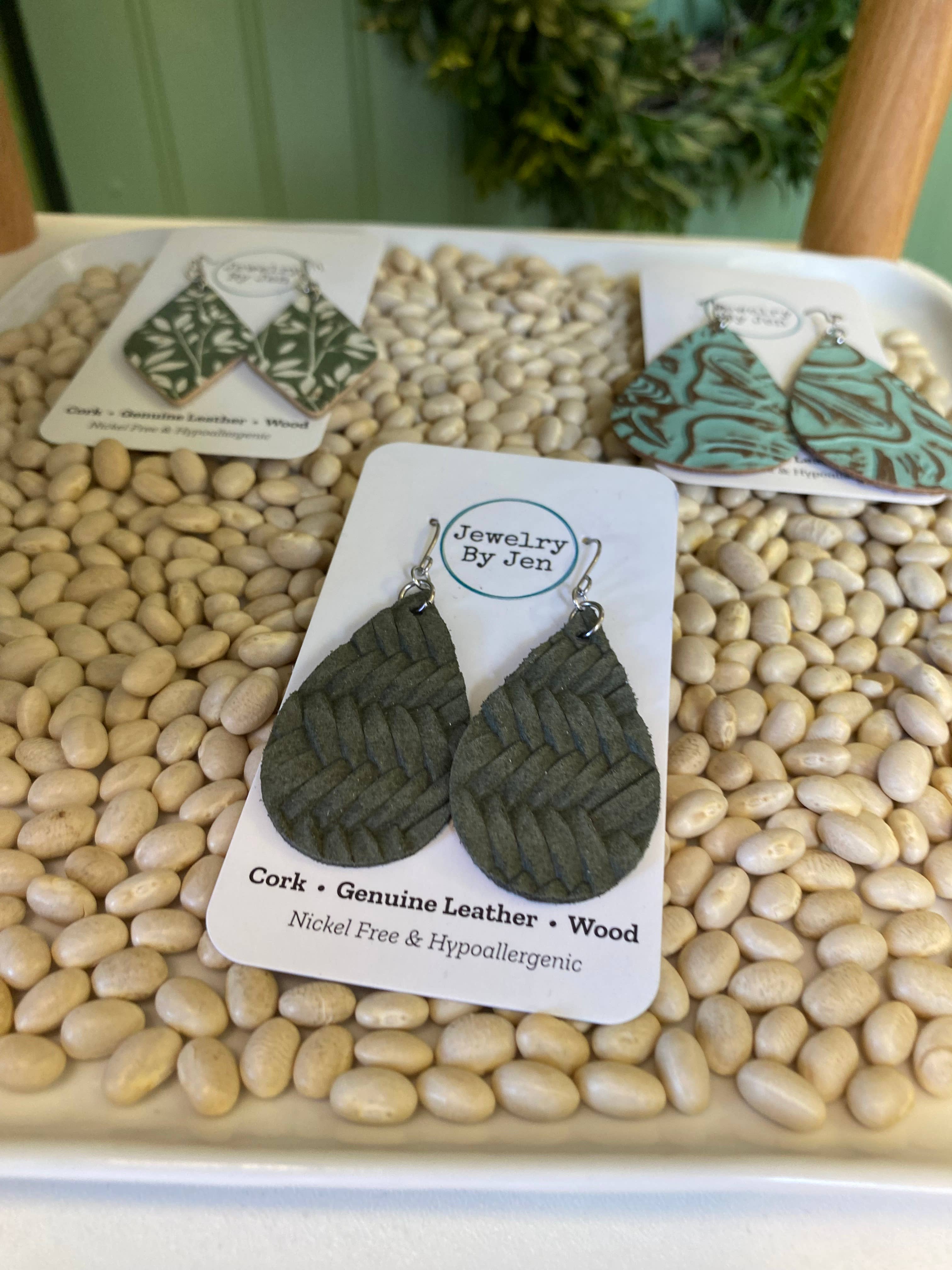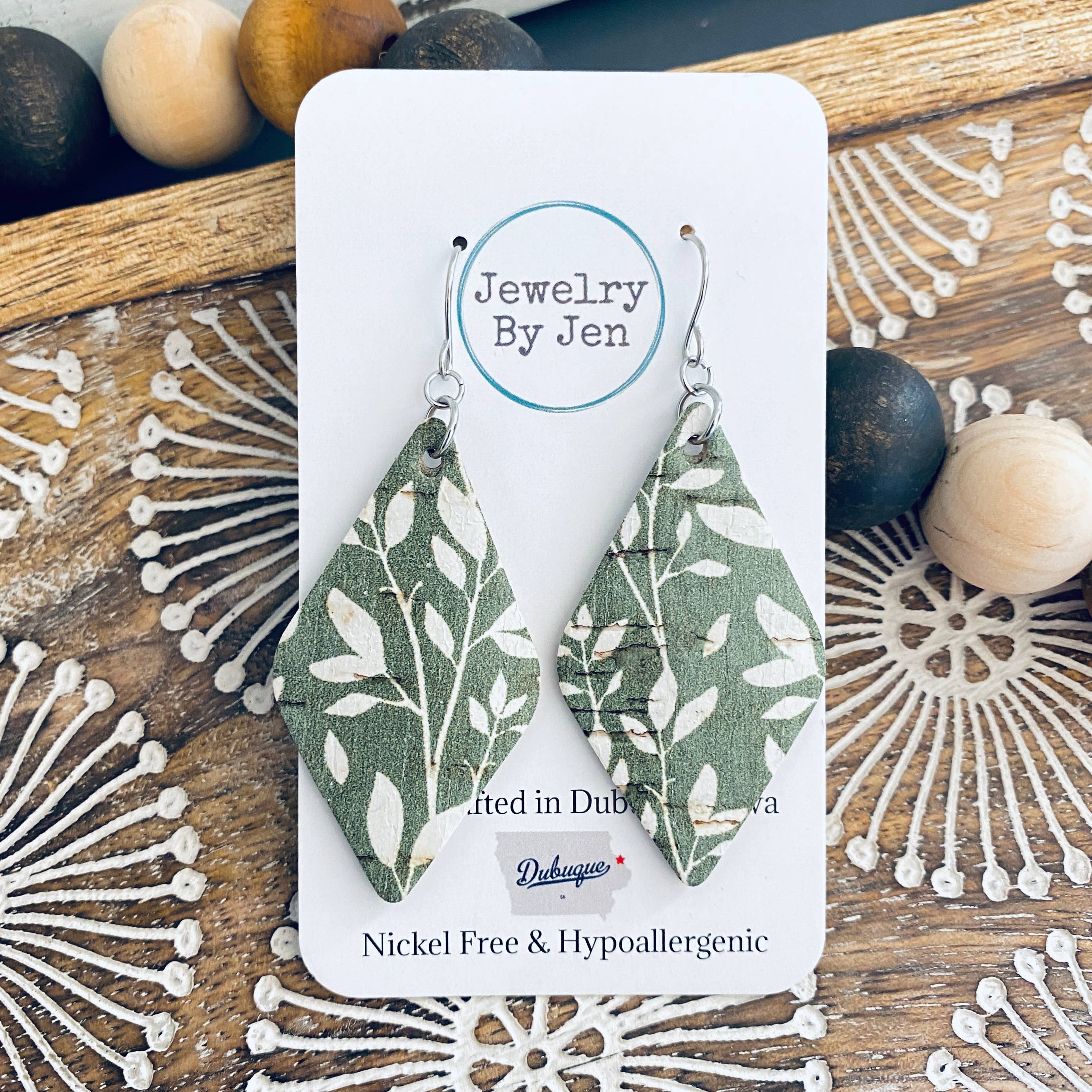 Jewelry By Jen - Wholesale Dangle Earrings - Lora Earrings: Green & White Willow