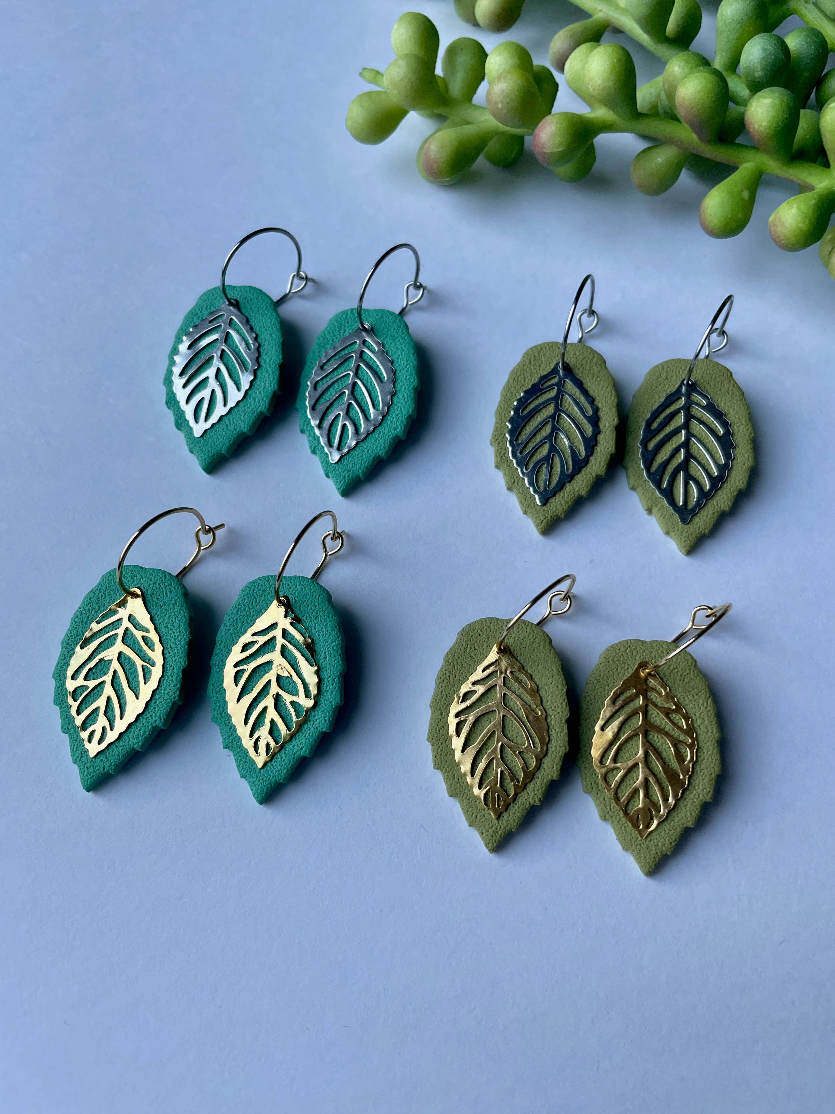 Lora Earrings: Green & White Willow